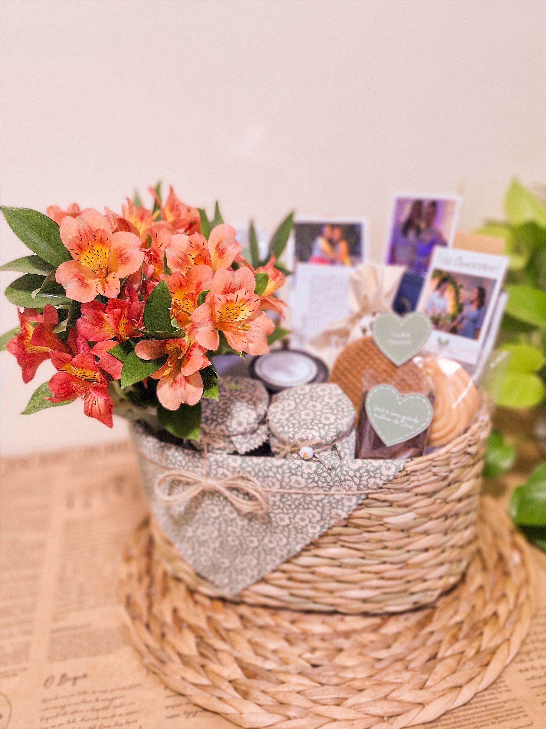 Acompanha: Cartão personalizado, papelaria afetiva no tema (aniversário,casamento, gratidão...)